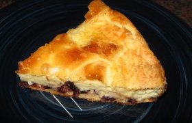 Sluoksniuotos tešlos pyragas su varške ir ananasais