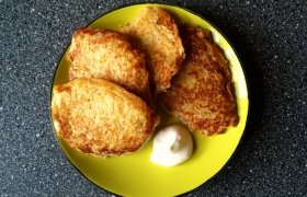 Orkaitėje užkepti bulviniai blynai su pievagrybiais, kumpiu ir sūriu