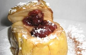Obuoliai, įdaryti su razinomis, riešutais ir kiaušinio baltymo ''pagalvėle"