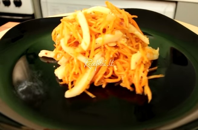 Visus kitus ingridientus sumaišyti, užpilti ant morkų. Gerai išmaišyti.