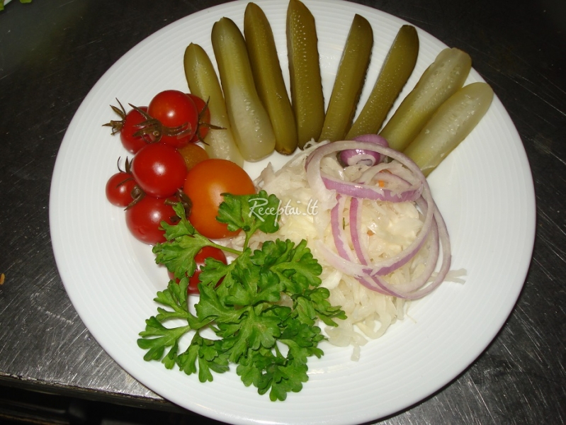 Į trijų litrų stiklainį sudėkite visus komponentus ir užpilkite ką tik užvirusiu vandeniu. Ragauti galite jau sekančia dieną.