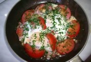 Pomidorą didelį ar 2 mažus pjaustyti stambiais griežinėliais.Jais apkloti spirgučius ir lengvai pakepinti,praktiškai pašildyti.Kepinant ilgiau jie išskysta ir ne taip skanu.