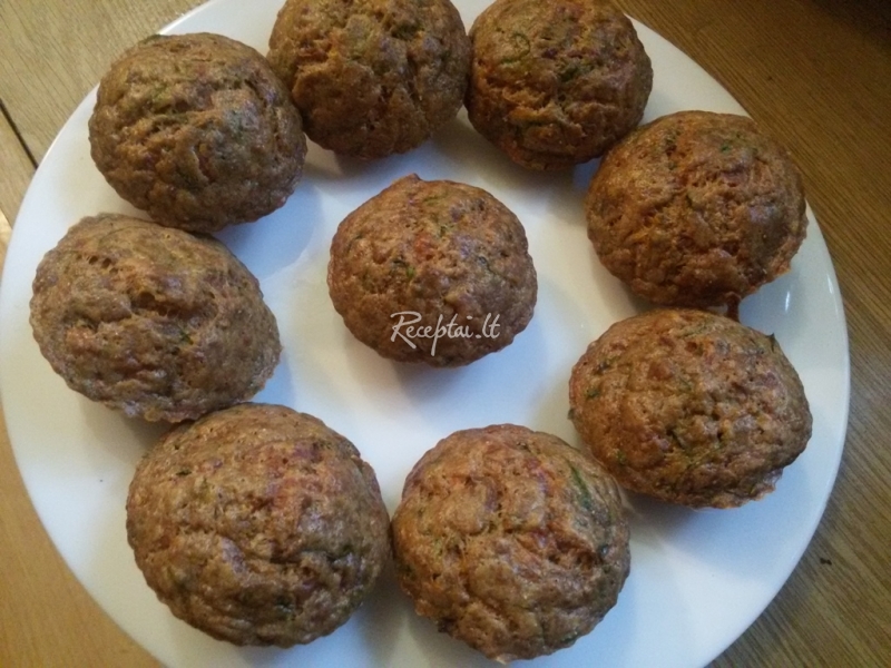 Sumaišyti miltus su manų kruopomis ir kepimo milteliais, pridėti prie cukinijos mases ir sumaišyti. Supilkite pieną, druską ir pipirus, supilkite alyvuogių aliejų ir išmaišykite. Tešla turi būti grietines konsistencijos. Jei tešla per skysta, pridėti šiek tiek miltų, jei per tiršta - truputį pieno. Išdėstyti tešlą į formeles ir kepti įkaitintoje iki 180