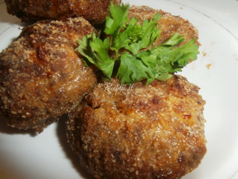Įkaitinti orkaitę iki 170°C temp., formuoti kotletus ir dėti į kepimo indą. Kepti apie 30 min.
