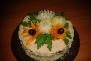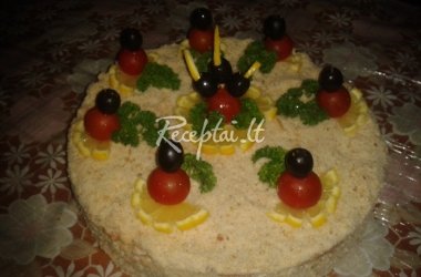 Imam metalinę atidaromą formą. Pradedam sluoksniuoti mūsų užkandinį tortą: