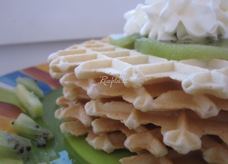 Įkaitintą vaflinę ištepti riebalais, samčiu įpilti tešlos ir iškepti vaflius. Patiekti su supjaustytais kiviais ir grietinėle.