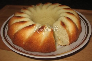 Sviestą gerai išsukite ir po vieną sumuškite kiaušinius dalimis berdami cukrų. Varškę ištrinkite pro sietelį ir sudėkite į sviestą kartu su miltais bei rūgščiame vandenyje ištirpinta soda. Išmaišę supilkite į riebalais išteptą keksinę formelę ir kepkite vidutinio karštumo orkaitėje 30 min. Kai atvės, išimkite iš formos ir apibarstykite miltiniu cukrumi.
