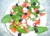 Žalumynus susmulkinkite, agurkus ir ridikėlius supjaustykite griežinėliais arba smulkiau, pomidorus skiltelėmis arba bet kokiais gabaliukais, pagardinkite druska ir pipirais ir gerai išmaišykite su grietine.