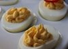 Fermentinį sūrį smulkiai sutarkuoti, sumaišyti su penkiais kiaušiniais ir majonezu.