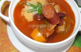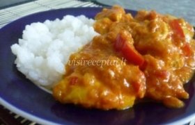 Aštri vištiena su alyvuogėmis ir rausvaisiais svogūnais